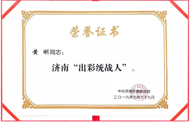 實至名歸!恭喜黃剛榮獲濟南“出彩統戰人” 稱號