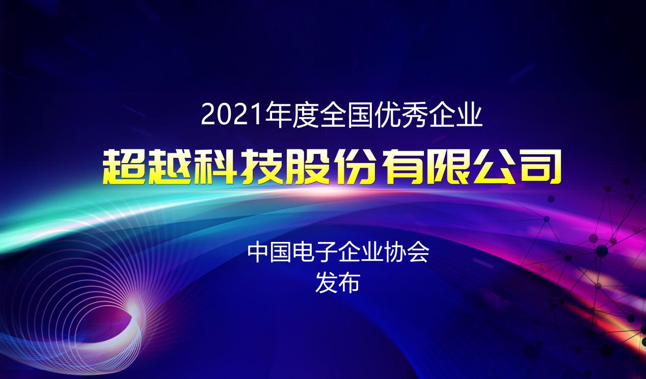 近日,中國電子企業協會正式公布了"2021年優秀企業及優秀企業家名單"。超越科技股份有限公司以自身科技創新硬實力,在全國眾多企業中脫穎而出,成功入選優秀企業名單。同時,公司董事長黃剛也榮膺優秀企業家稱號!