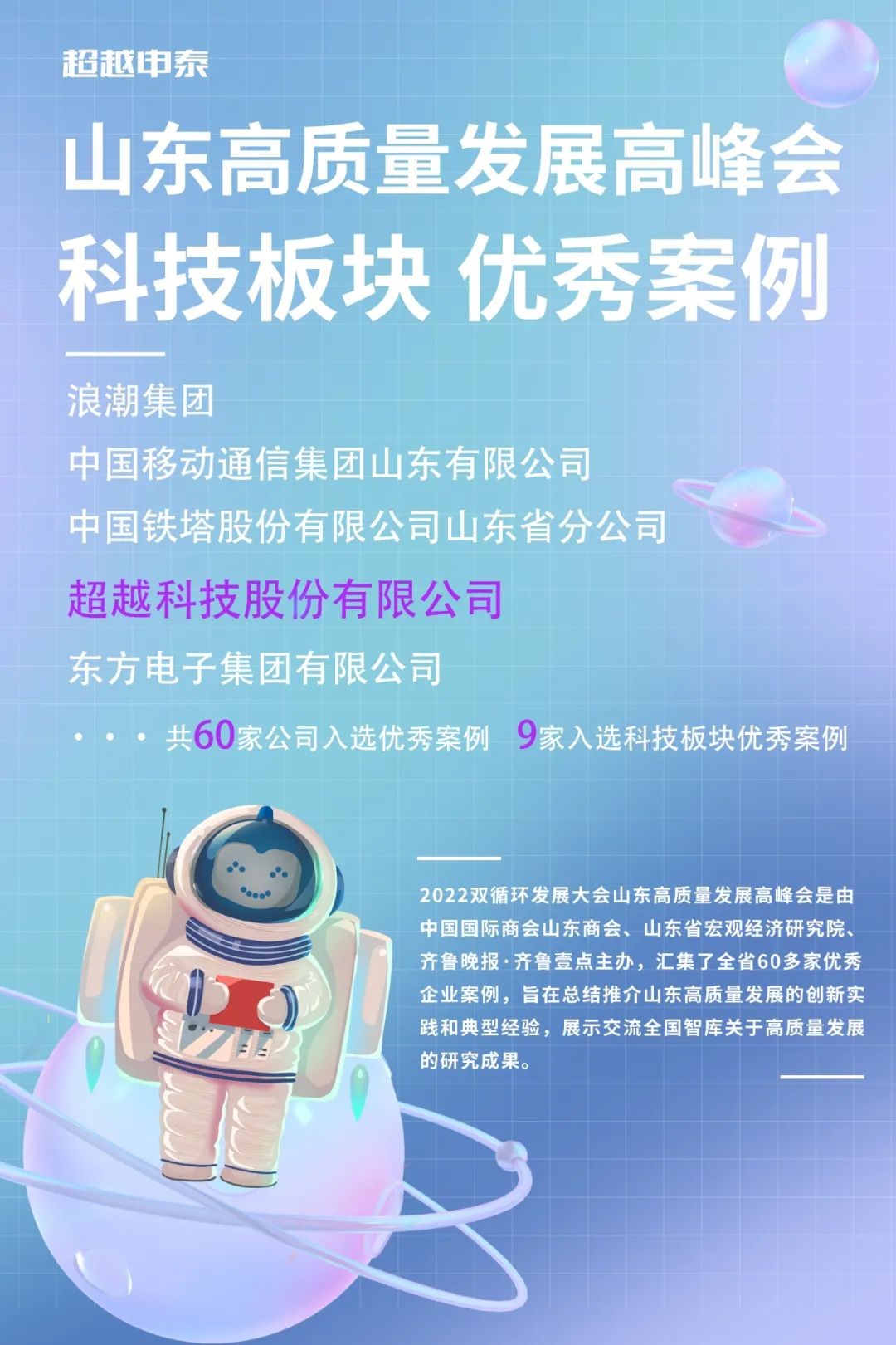 超越科技入選“山東高質量發展高峰會優秀案例”